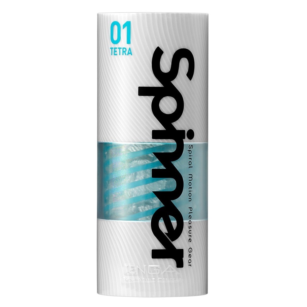 Transparenter und wiederverwendbarer Masturbator Spinner von TENGA mit einer integrierten inneren Spule, die den Masturbator während der Penetration drehen lässt (Internal Coil Mechanism). Die Hülle hat ein geometrisches Fliesenmuster mit weichen Kanten, das ein umhüllendes und dynamisches Gefühl vermittelt.