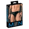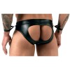 Jockstrap von Svenjoyment Bondage, gefertigt aus modernem Material mit matter Oberfläche, das die Silhouette betont. Er verfügt auf jeder Seite über einen Ring zur Befestigung der mitgelieferten Handschellen, die dank des Klettverschlusses verstellbar sind und so für Komfort und Vielseitigkeit sorgen.