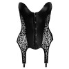 Trägerloses Cami-Korsett von Noir mit dezenten transparenten Details und elegantem Leopardenmuster in Samtoptik. Der Einsatz vorne und die Details sind mit einem raffinierten, matten Power-Wetlook-Finish versehen. Die Kombination aus weichen und vollständig elastischen Materialien garantiert höchsten Tragekomfort und eine perfekte Passform. Das Bustier-Design mit dekorativer Schleife am Rücken und Klettverschluss vorne betont die Silhouette. Die 6 breiten Strumpfhalterbänder runden diesen verführerischen Look harmonisch ab.