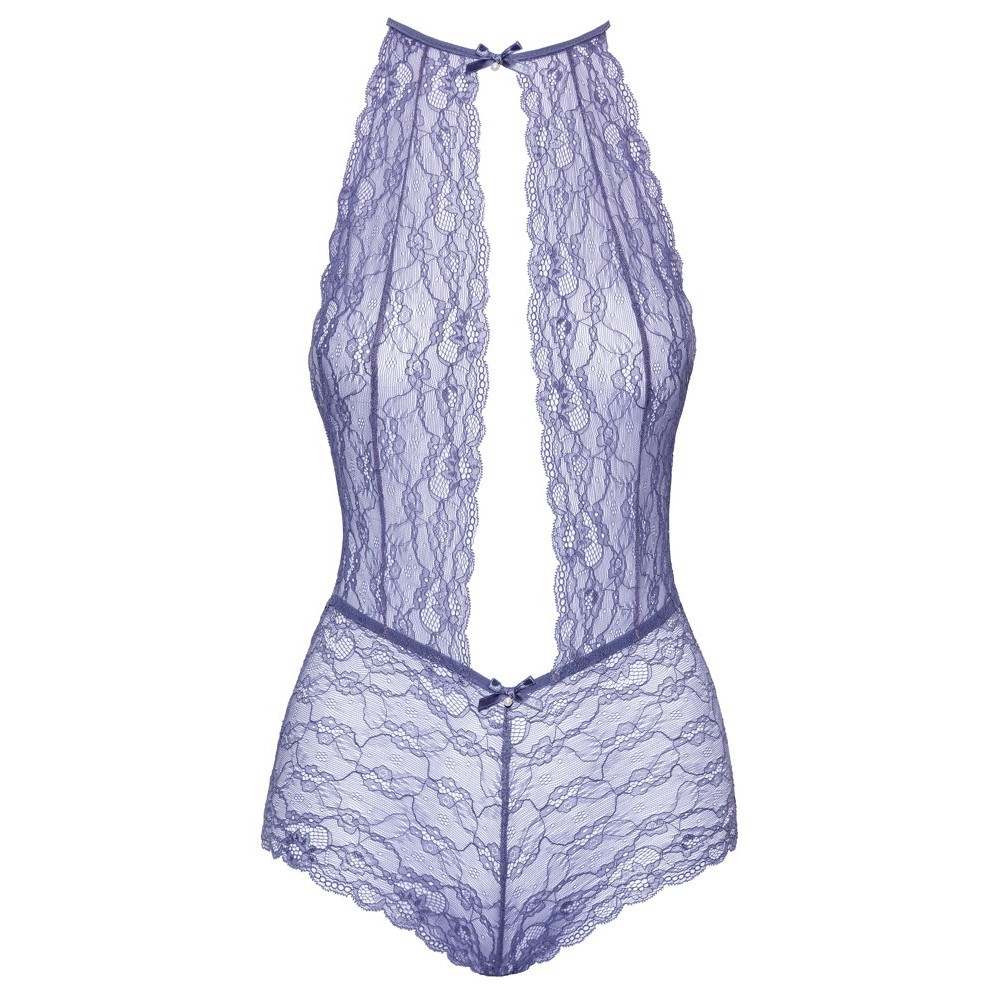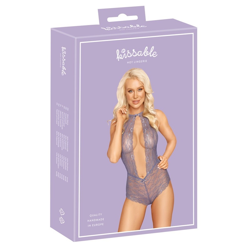 Body von Kissable, vollständig aus feiner Spitze gefertigt. Mit Ausschnitt vorne und hinten, was einen eleganten und verführerischen Look schafft. Extrem weich und elastisch für höchsten Tragekomfort. Der Kragen und der Taillenbund sind mit kleinen Schleifen und glitzernden Steinchen verziert. Der Kragen verfügt über einen kleinen Hakenverschluss auf der Rückseite.