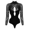 Langärmeliger Body von Cottelli FANTASY aus feinem, weichem und elastischem Material mit elastischem Kragen für zusätzlichen Tragekomfort. Der obere Teil ist halbtransparent mit einem gewebten Streifenmuster, bleibt jedoch im Brustbereich blickdicht. Er verfügt über elegante Ausschnitte vorne und an den Seiten, wobei die Vorderseite zusätzlich mit glänzenden Strass-Details verziert ist. Der Schritt ist mit Druckknöpfen versehen, was für mehr Komfort sorgt.