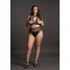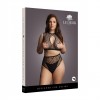 Two-piece set consisting of a crop top and high-waisted thong in fishing net and fence net with teardrop detailing. With some elasticity, it fits sizes XL to 4XL. Thong not included.
