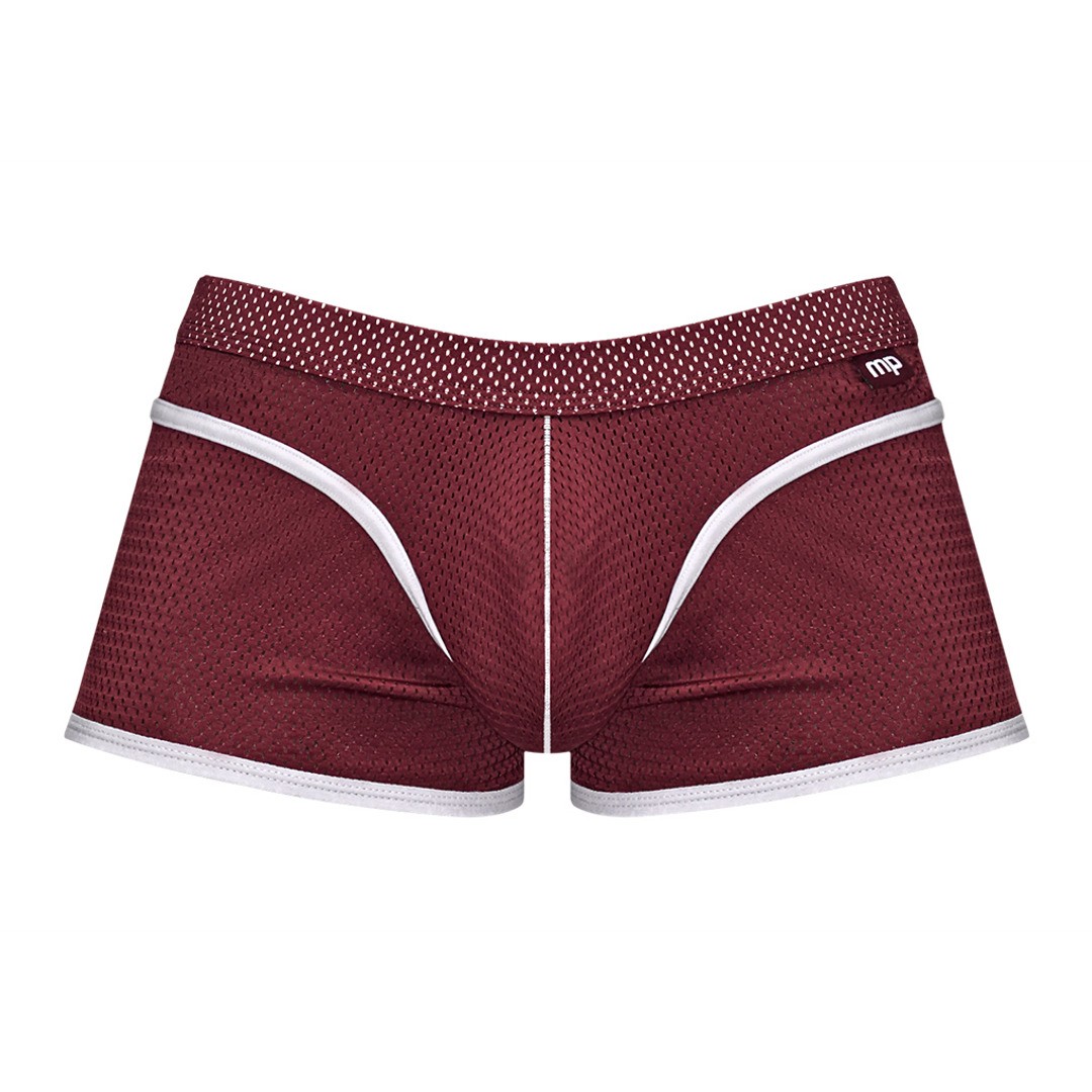 From the Sport Mesh collection by Male Power, the Sport Mini Short, features a stay put fabric covered waistband with a logo'd MP tag. Plush elastane sporty striping highlights the front, rear and legs