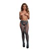 Suspender style pantyhose with strappy waist and open criss-cross backseam. This style fits size XS-XLThong not included.
