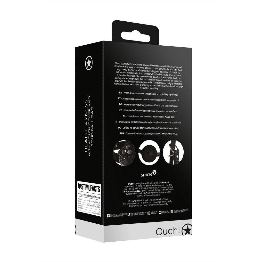 Wrap your slave's head in this face harness with mask and breathable ball gag, an essential addition to your BDSM collection.