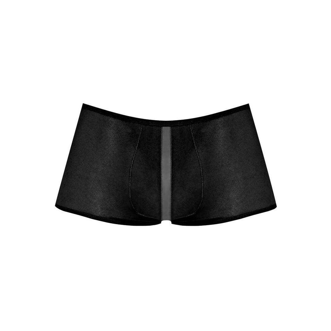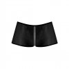 From the Landing Strip collection by Male Power, the Mini Short features thin plush elastic trim on waist and legs, a tone on tone matte onyx insert strip through pouch and rear, and a decorative metallic brand label on rear waistband.