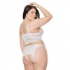 Longline bralette with sexy crotchless panty. The scallop lace fabric is stretchy. The cups on the bralette have strappy details and the panty has adjustable straps on the size, this makes it possible to adjust the size. *The G-String worn under the panty is not included.