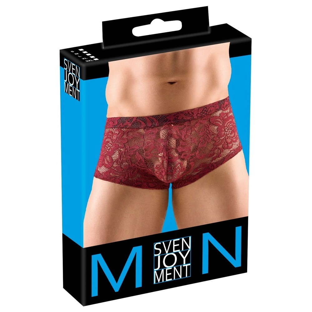 Emphasising pants from Svenjoyment that are made out of dark red floral lace with a stretchy, fabric-covered waistband. It is soft and stretchy for an extremely comfortable fit.