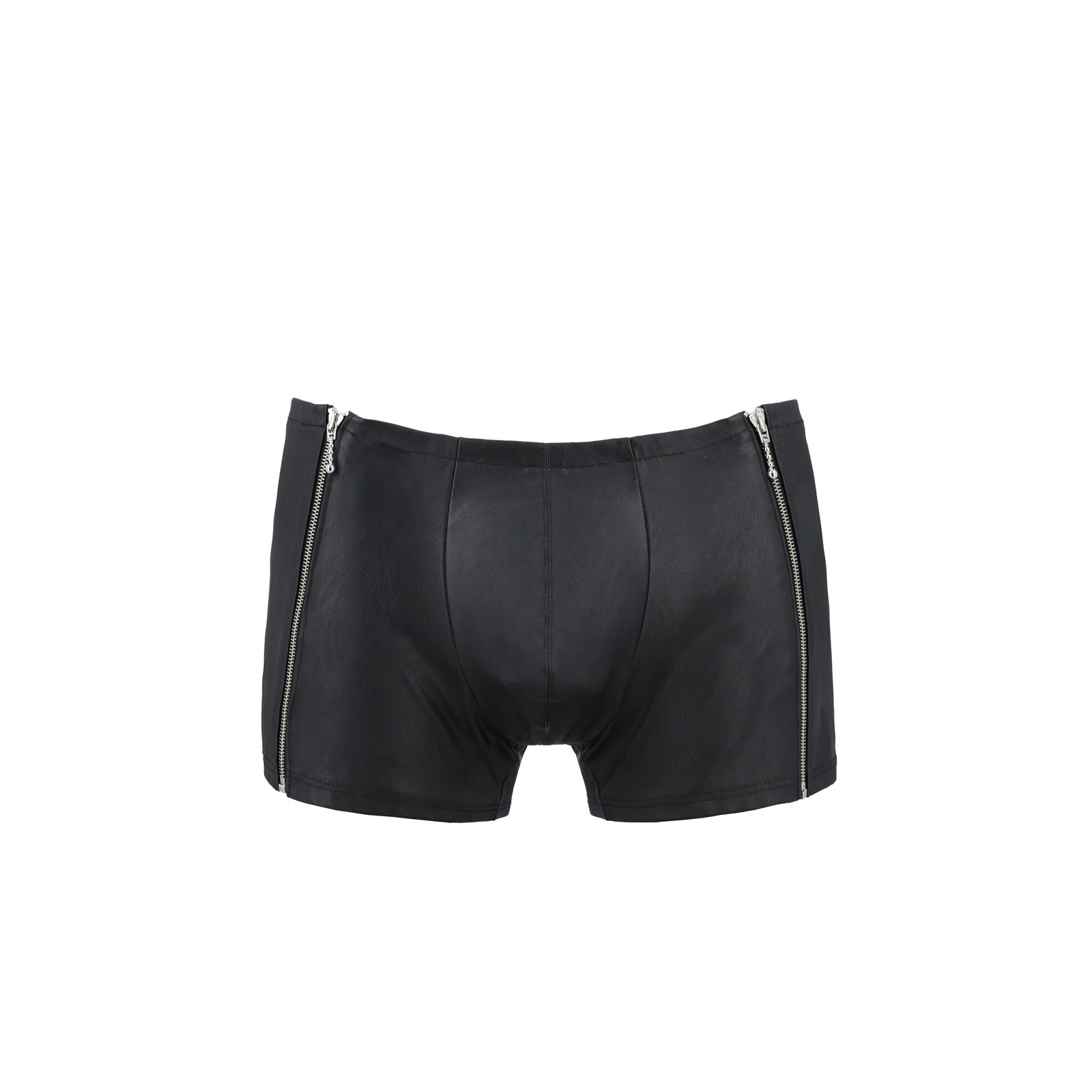 Fabricados em pele ecológica preta, os fechos de correr metálicos conferem-lhes um toque sensual. O material elástico e o corte confortável garantem o máximo conforto durante a utilização.