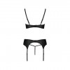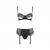The set includes a bra with cups reinforced by whalebone, ensuring perfect support and shaping. The delicate thong and garter belt complete the look, making it even more enchanting.