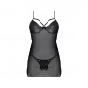 A tanga que acompanha o conjunto é aberta entrepernas, reforçando a proposta ousada e sedutora.