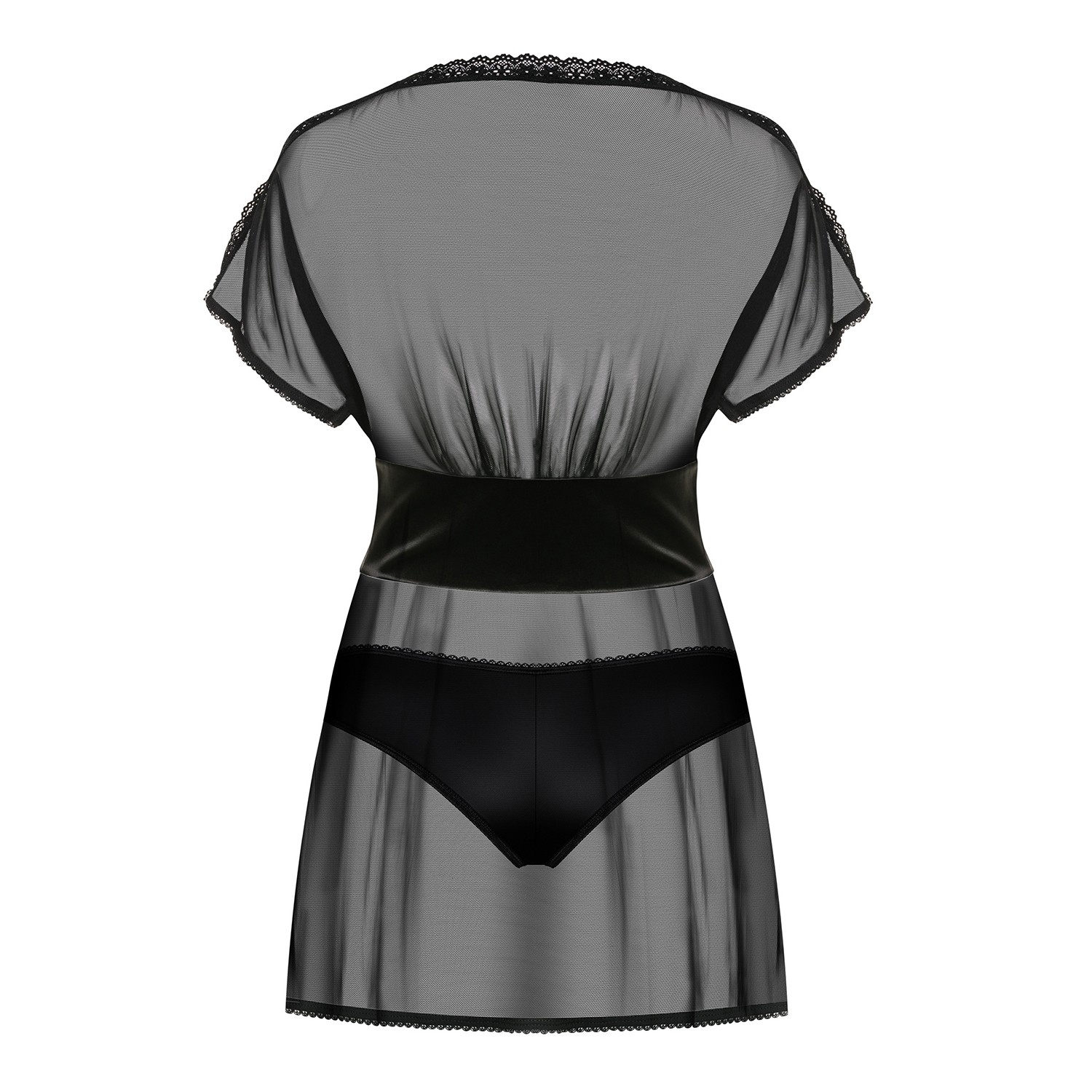 Appeal to your sensuality with this translucent babydoll with beautiful lace and satin details. Adjust it perfectly to your curves through the delicate satin ribbon.