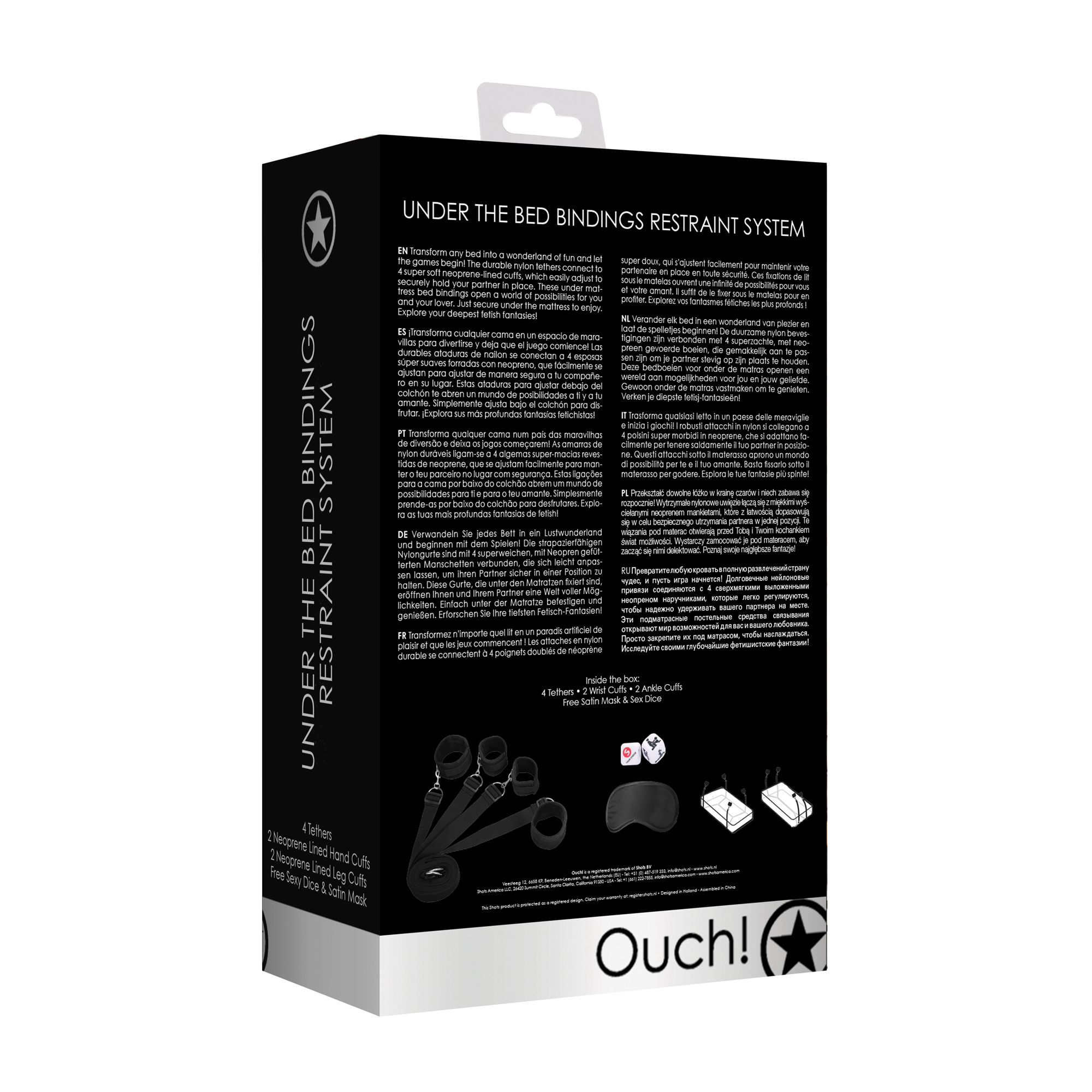 Transform any bed into a wonderland of fun and let the games begin! The durable nylon tethers connect to 4 super soft neoprene-lined cuffs, which easily adjust to securely hold your partner in place. These under mattress bed bindings open a world of possibilities for you and your lover. Just secure under the mattress to enjoy. Explore your deepest fetish fantasies!