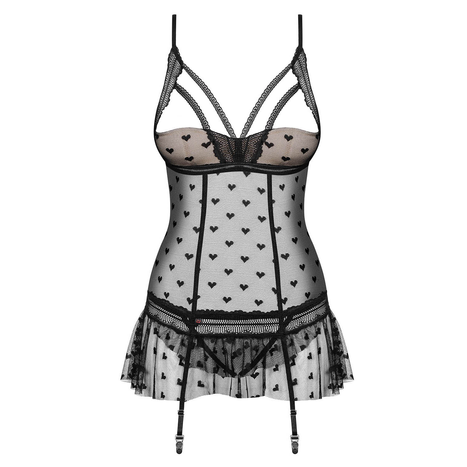 Spicy underwear that will make your evenings hot? Today you will present yourself in a totally unique style! Gently emphasized hips, a bit of elegant lace and mesh with a subtle pattern. Imagine a combination of sexy garter straps and a naughty thong – a really explosive mix!