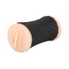 This arousing lover promises double the amount of pleasure because it has two ends! The skin-coloured masturbator has an inviting vagina opening and a plump anus opening – all you have to do is decide which opening you are in the mood for. There is a dotted pleasure tunnel behind the vagina opening and a grooved pleasure tunnel behind the anus opening. Any sized penis can fit through the openings, thanks to their flexible diameters. The material also feels wonderfully realistic as well. One thing is definitely for sure – you’ll definitely have everything in hand whichever end you decide to use because it has a black sleeve (with a texture) around it.