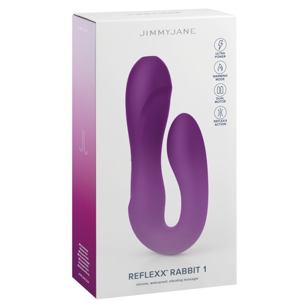 JimmyJane's flexible Reflexx Rabbit 3 double vibrator is designed for dual stimulation of the vagina/G-spot and clitoris. Its U-shaped design with flexible protrusion adapts perfectly to the body and movements during stimulation. Its softness provides the ideal pressure for powerful vibrations to be felt intensely, both internally and externally.