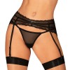 Medilla black garter belt by Obsessive, made of delicate stretch tulle and fine eyelash lace. Comfortable fit with vertical shaping bones, adjustable hook closure at the back and adjustable garter straps.