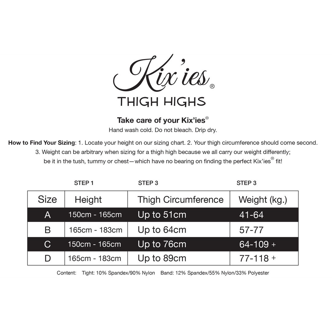 Available in sizes from Petite to Plus Size, they are the No.1 thigh-high stockings that really stay in place! For the perfect fit, measure the height and circumference of your thigh — weight does not matter, as each body has its own unique shape.