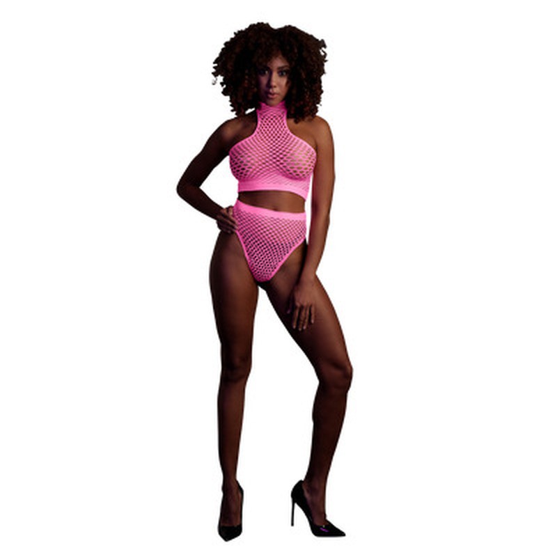 Unleash your inner goddess with UV-activated materials that make this set glow in the dark, ensuring you stand out with a seductive touch of mystery. Choose from neon pink or neon green for a vibrant look full of personality.