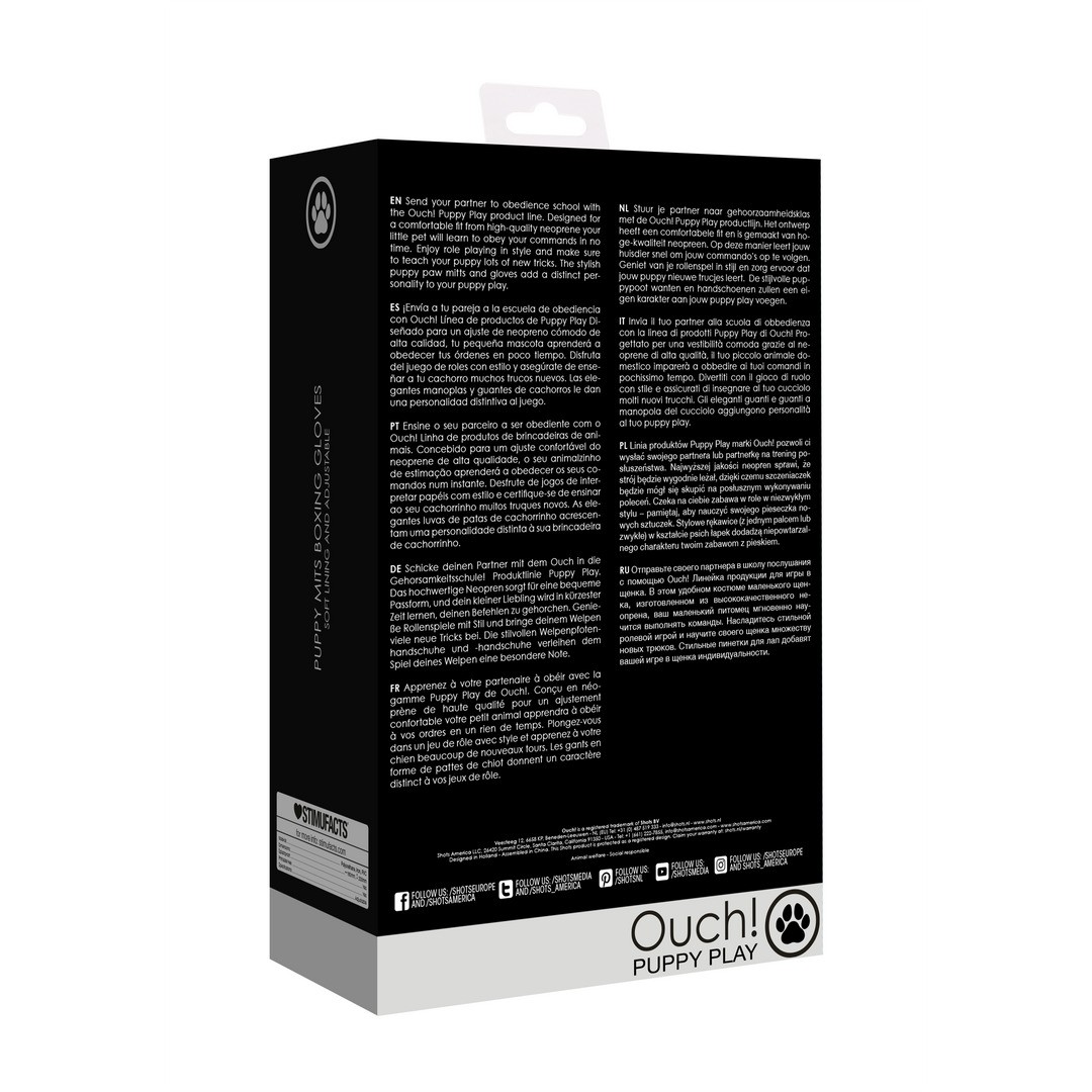 Enjoy role playing in style and make sure to teach your puppy lots of new tricks. Send your partner to obedience school with the Ouch! Puppy Play product line. The stylish puppy paw mitts and gloves add a distinct personality to your puppy play.