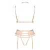 A classic lingerie set in a nude color, consisting of a bra, panties, and a garter belt.