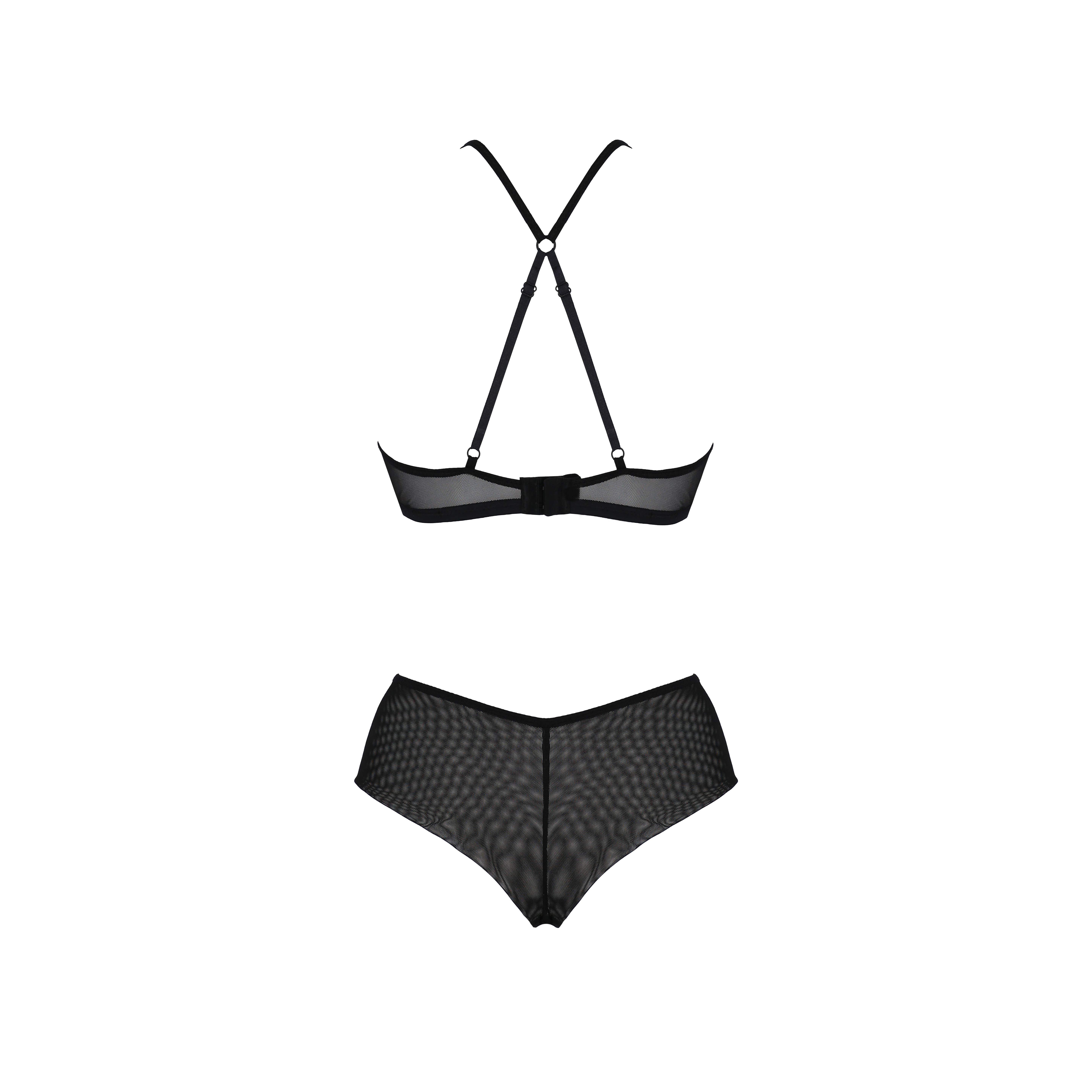 With a sensual and original cut, this set stands out for its extremely sexy French lace, which gives it a delicate and sophisticated touch.