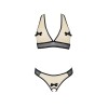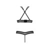 The set consists of a bra with an original cut that emphasises the bust in an elegant and provocative way, and a delicate open thong that complements the design.