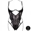 This open bra teddy with rims and black lace emphasises your curves for a sexy, comfortable fit. It boosts your self-confidence with a touch of elegance and seduction.