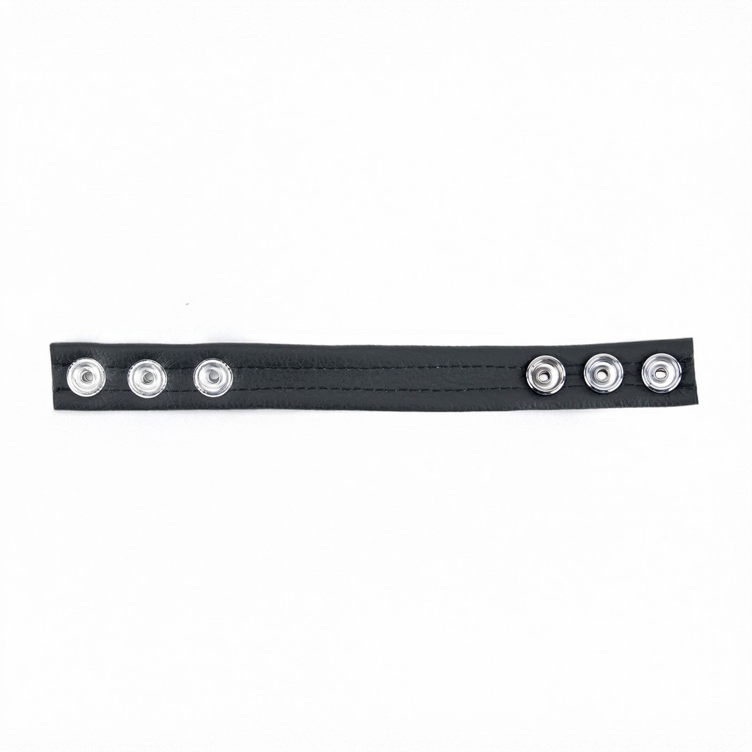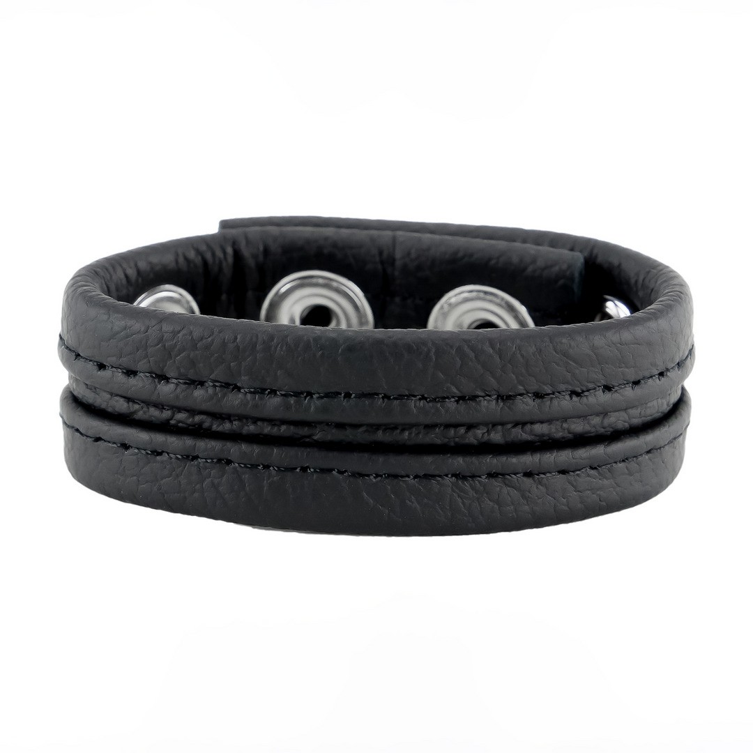 Genuine leather cock ring with three metal clasps and adjustable diameter, manufactured in Europe.