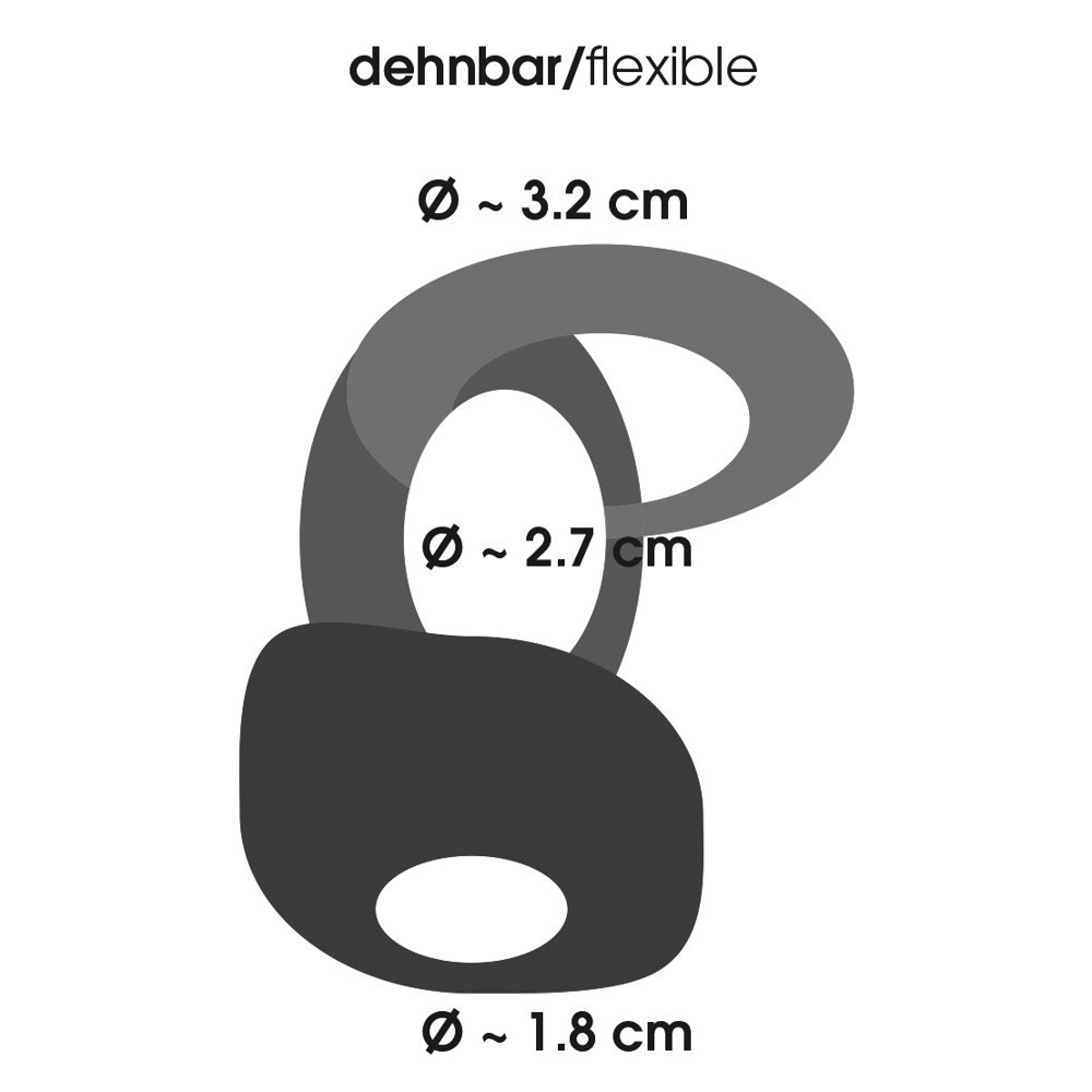 Anillo para el pene y los testículos con estrías estimulantes en el interior. Transparente/ahumado. Anillos de Ø 3,2 cm, 2,7 cm y 1,8 cm. Muy elástico, se adapta fácilmente tanto en longitud como en diámetro.