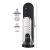 Bomba de pene totalmente automática con cilindro transparente y panel de control negro, ideal para erecciones más fuertes y un entrenamiento eficaz de la potencia. Proporciona placer al pene mediante una sensual sensación de succión. Equipada con escala de medición y botones de control. La funda de silicona es extraíble, lo que facilita la limpieza.