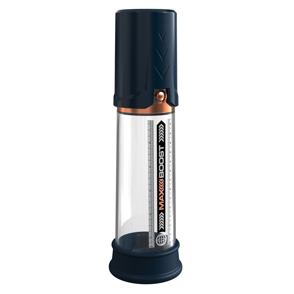 Bomba de pene transparente Max Boost de Pump Worx para todos los hombres que desean un entrenamiento eficaz para el pene y una mayor potencia. Con potente succión â estimulante como una mamada. Diseñado para promover el flujo sanguíneo y la expansión del tejido del pene para mejorar la fuerza de la erección y la dureza.
