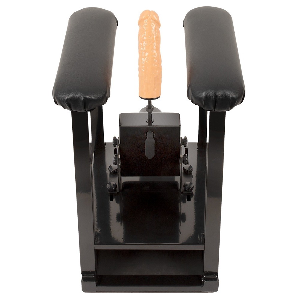 El dildo realista incluido se atornilla fácilmente al brazo de impulsión y se puede ajustar con precisión en altura y ángulo. La llave Allen suministrada también permite regular la longitud de la impulsión (hasta 8 cm) y la frecuencia de impulsión. El control se realiza mediante un mando a distancia con cable y mando giratorio, con un cable de 1,83 m, lo que permite el control incluso por parte de una pareja.