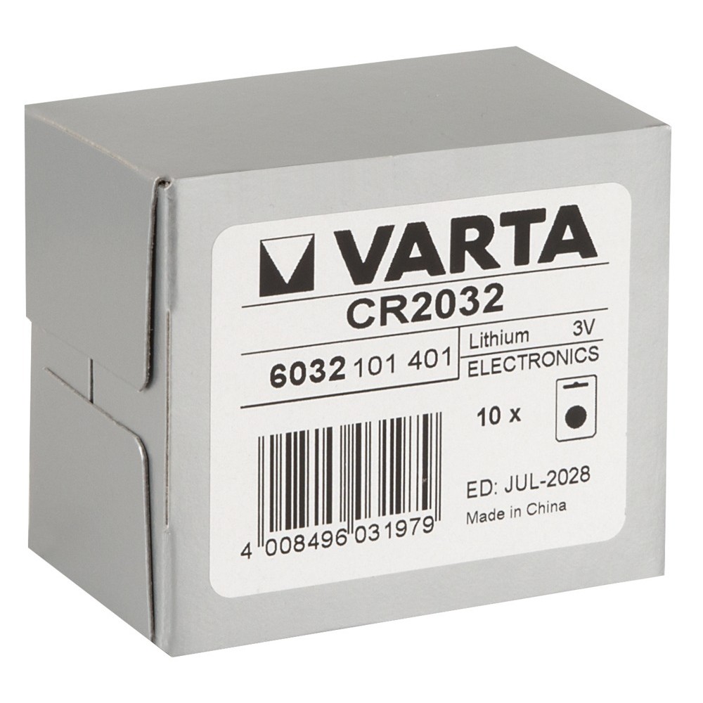 CAJA CON 10 BLÍSTERES DE 1 PILA ALCALINA CR2032 VARTA