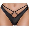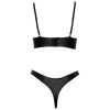 Conjunto de Cottelli LINGERIE compuesto por sujetador con aros y tanga estilo Río, en elegante tejido negro mate. Destaca por los tirantes elásticos decorativos y los anillos plateados en el escote y en la parte delantera del tanga. El tejido elástico garantiza un ajuste perfecto y cómodo. El sujetador tiene tirantes ajustables y cierre de corchete en la espalda.