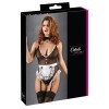 Body de powernet con encaje decorativo, tirantes y tirantes ajustables y extraíbles, sin entrepierna.