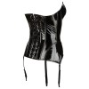 Este sexy corsé de Black Level está confeccionado en vinilo negro brillante y se presenta como un auténtico reclamo erótico. Las curvas se realzan de forma seductora gracias a su corte más largo de lo habitual, que también cubre la zona de las caderas. Las ballenas integradas confieren una silueta extremadamente femenina, mientras que el lazo decorativo en la parte trasera remata el look con un toque elegante. El cierre frontal con corchetes permite abrir y cerrar el corpiño de forma rápida y práctica. Las seis tiras de tirantes son ajustables y extraíbles.