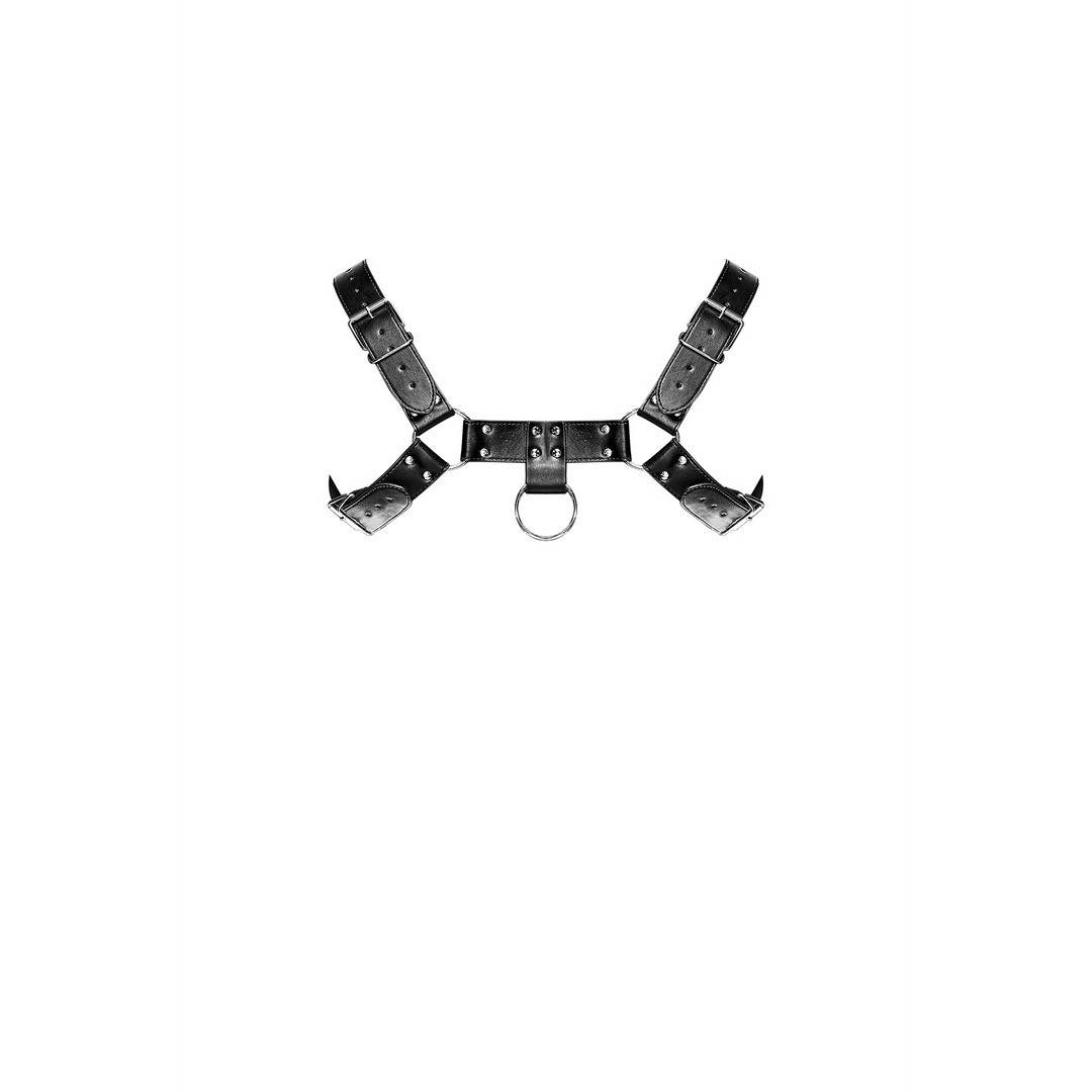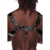 Arnés corporal masculino Male Power en cuero nobuck con hebillas ajustables y tachuelas metálicas, ideal para un estilo fetichista y atrevido.