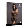 Este elegante minivestido de cuello alto de Le Désir combina sensualidad y comodidad en un diseño sofisticado. Presenta un delicado ribete de encaje y un moderno estampado a rayas que realza la silueta femenina.