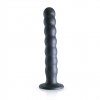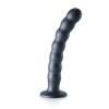 Dildo de silicona Ouch! Premium para el punto G, con ventosa, perlas estimulantes y elegante color metálico.