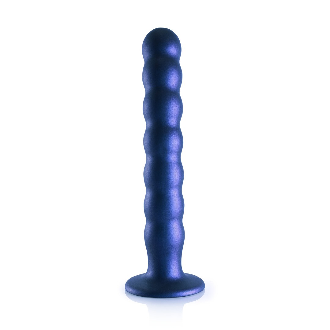 Dildo de silicona Ouch! Premium para el punto G, con perlas, ventosa fuerte y elegante color metálico.