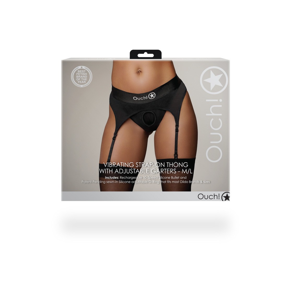 El tanga strap-on con vibración y ligueros ajustables se adapta como un tanga tradicional, con la ventaja añadida de los ligueros para un toque extra de sensualidad. Sencilla y elegante, es perfecta para ti y tu pareja.