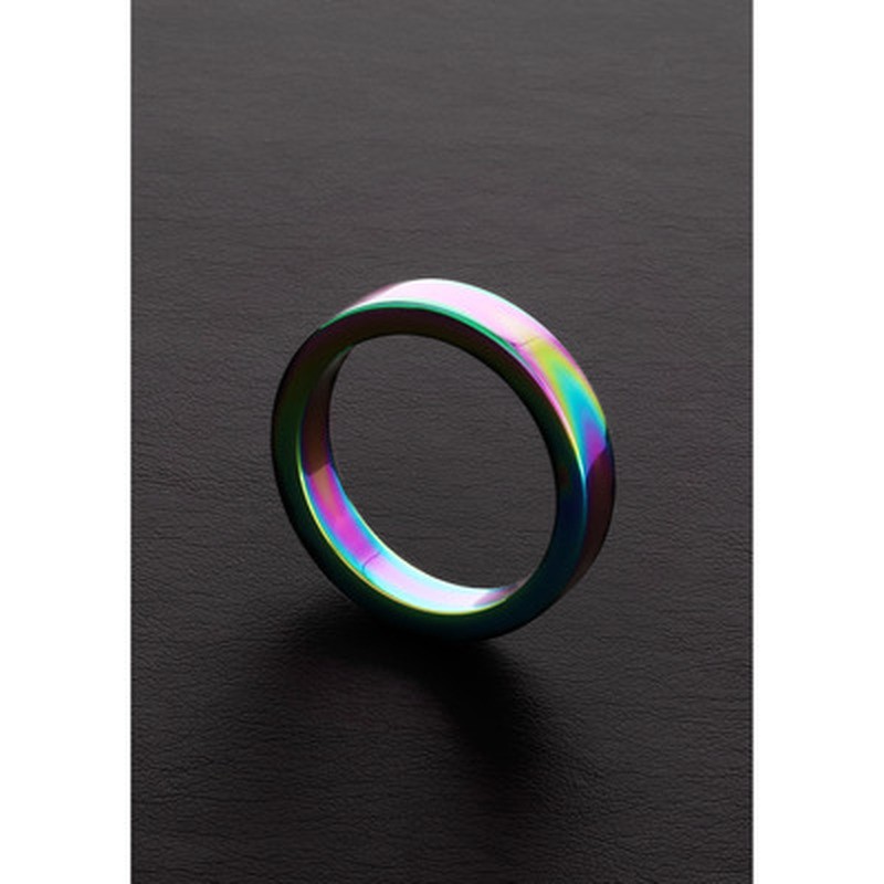 Anillo para el pene Rainbow Flat de acero inoxidable anodizado, 5 cm, elegante y resistente para erecciones más prolongadas.