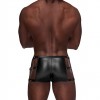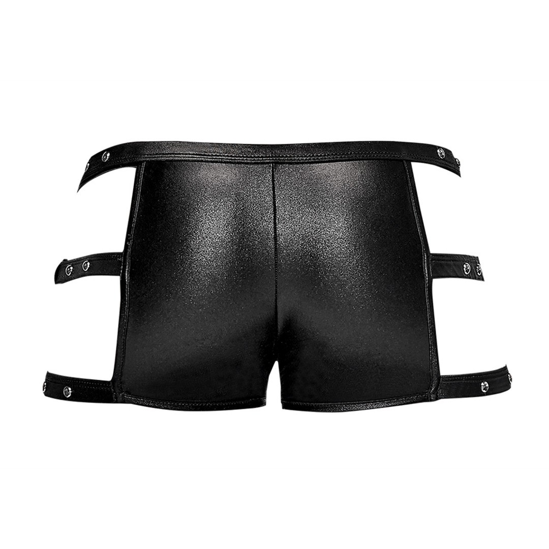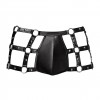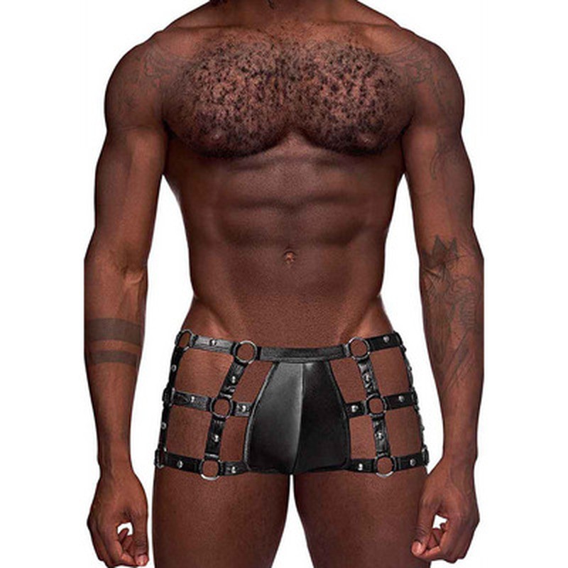 Short para hombre Male Power Fetish: diseño en forma de jaula con aspecto de cuero y anillos metálicos decorativos.