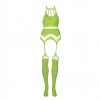 Conjunto Neon UV con top halterneck y medias de ligueros: sensual, vibrante y diseñado para brillar cuando se apagan las luces.
