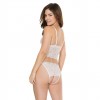 Sujetador con escote profundo y tanga sensual sin entrepierna. El tejido de encaje con conchas es elástico. Las copas del bralette presentan detalles de tiras y el tanga tiene tiras ajustables, lo que permite adaptar el tamaño.