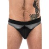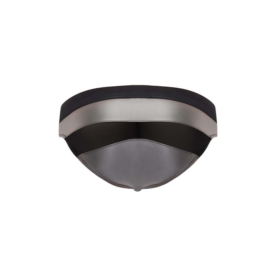 Bikini tanga masculino de inspiración futurista con tejido elástico de alta tecnología y detalles en malla transpirable.