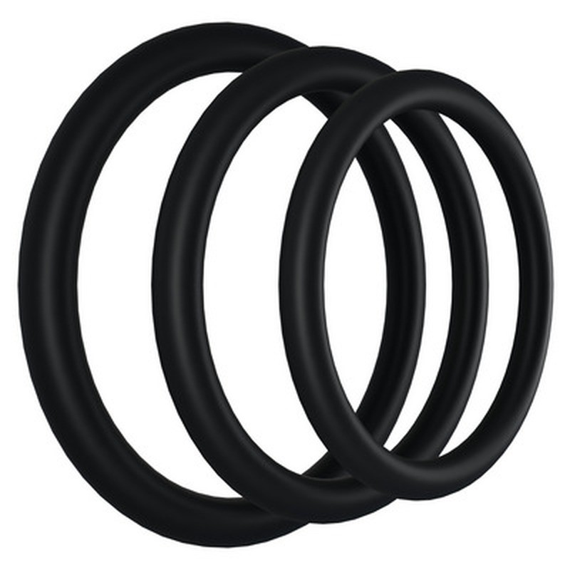 Conjunto de tres anillos para el pene finos en TPE, extensibles, para erecciones más duraderas y cómodas.