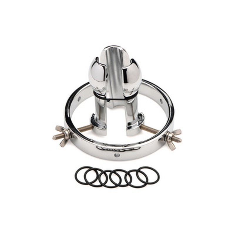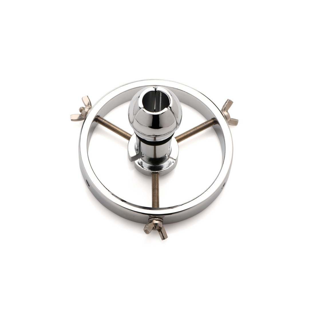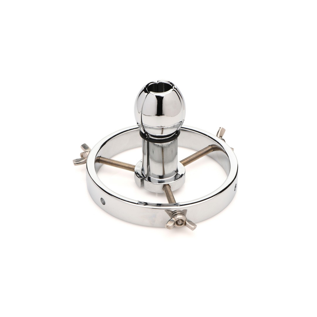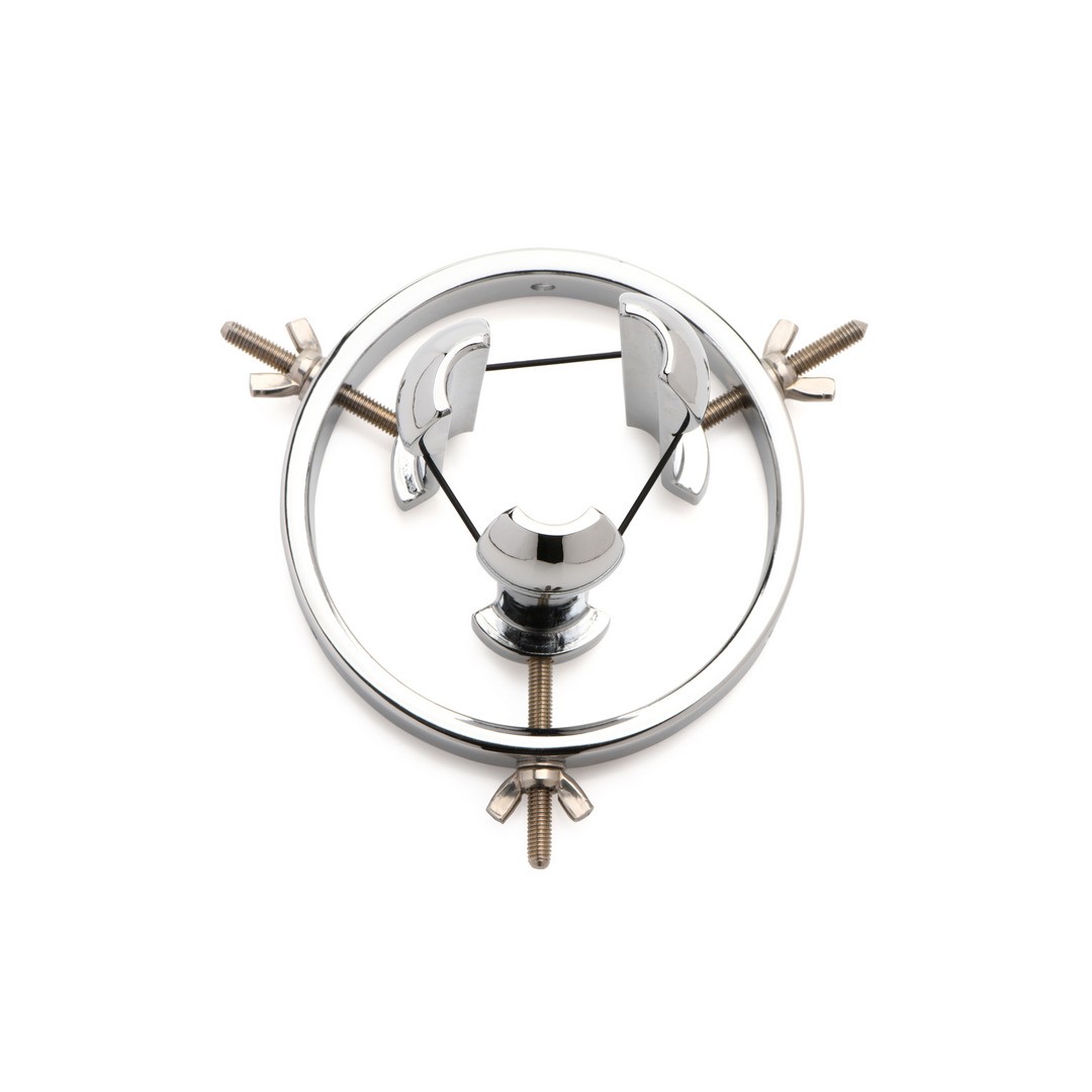 Espéculo anal ajustable de acero inoxidable, ideal para entrenamiento profundo y fisting avanzado.
