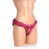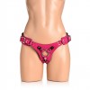 En la parte delantera, un anillo metálico en forma de O (3,8 cm de diámetro interno) acomoda dildos con base ancha, manteniéndolos seguros durante la penetración. Combinando estilo, funcionalidad y comodidad, este arnés permite una conexión íntima con la pareja, ya sea en juegos dominantes o en intercambios de roles.